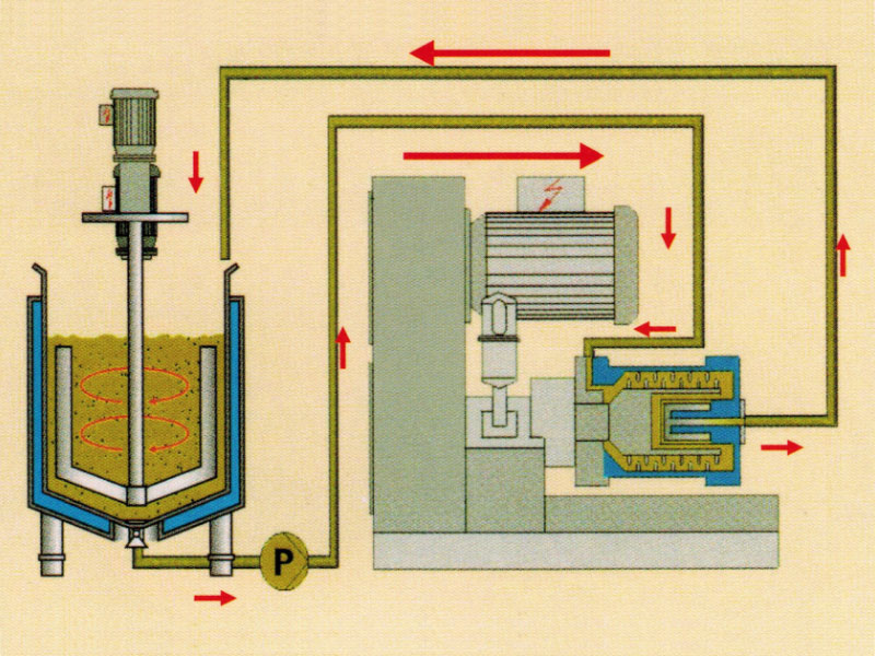 砂磨能量集中,所有物料都是在砂磨區內進行砂磨,所得物料粒徑分布窄;攪拌桶和分散機內漿料大流量循環,所以漿料能在短時間能循環數十遍,大批量處理物料。